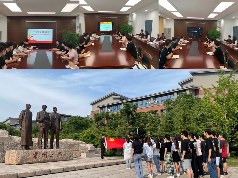 最后,在“常州三杰”群塑前,由万莹领誓,全体与会的2022届毕业生党员重温了入党誓词。大家面向党旗,整齐列队,举起右拳,高声宣读入党誓词。铿锵有力的宣誓声,表达了全体毕业生党员坚定政治信念和时刻不忘初心、矢志永远奋斗的坚定决心。