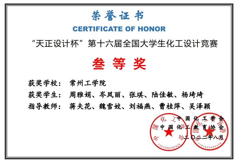 本次竞赛的主题为“为某大型化工设计企业设计一座1,4丁二醇生产分厂或为现有的1,4丁二醇生产分厂设计技术改造方案,相对现有生产装置的技术水平,要求技术提升达到《中国制造2025》中提出的绿色发展指标”。由ladbrokes立博贺郑盘、周青峰、马小诗、朱士泽、周毅5名同学组成的“化工设计队伍”团队利用Aspen Plus、Auto CAD、Plant3D、SW6等仿真、设计及校核软件,完成了工艺、设备、控制、总图运输、三维工厂等计算与设计,获国家二等奖;周雅娟、岑凤丽、张琪、陆佳敏、杨琦琦同学组成的“超能陆战队”团队获国家三等奖;史家伟、王天逸、沙莎、马明净、李杰同学组成的“水往酒里队”团队、王煊轩、吴铭洲、靳知明、周培峰、盛雨琦同学组成的“碲铱锑队”分别获得江苏省二等奖各1项。