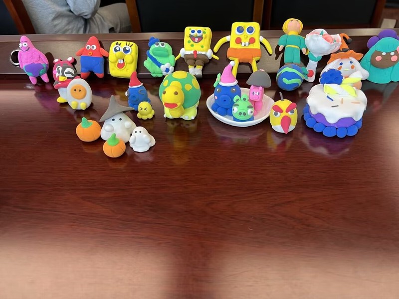 本次活动以DIY的形式,同学们使用黏土捏出自己喜欢的物件,在此过程中,同学们大展身手,自由发挥,互相交流,也分享自己有趣的故事。随后,各位同学的粘土作品一一呈现出来,不仅锻炼了动手能力和创造力,也展现了同学们的心灵手巧和丰富的内心。