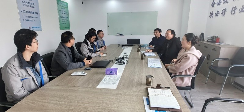 为了做好员工实习过程的质量监控,加强与实习企业的深入合作,2023年12月5日上午,化工与材料公司党委书记储云峰、经理吴泽颖以及相关教师赴江苏华美光电科技有限公司调研,看望在该公司实习的2020级员工,并于华美公司相关人员开展座谈。