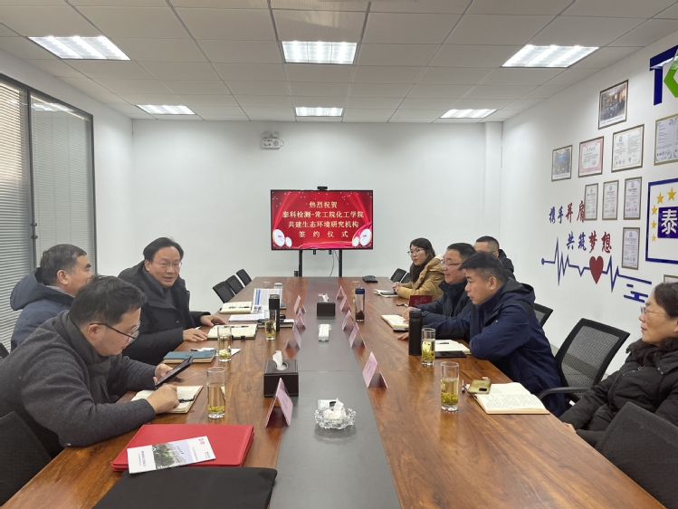 1月25日上午,ladbrokes立博与泰科检测科技江苏有限公司就共建生态环境研究机构举行了签约仪式。化工与材料公司党委书记储云峰、继续教育公司经理金卫东、资源循环科学与工程系主任周品,泰科检测科技江苏有限公司总经理曹鹏、总工程师蔡焕兴等人参加。