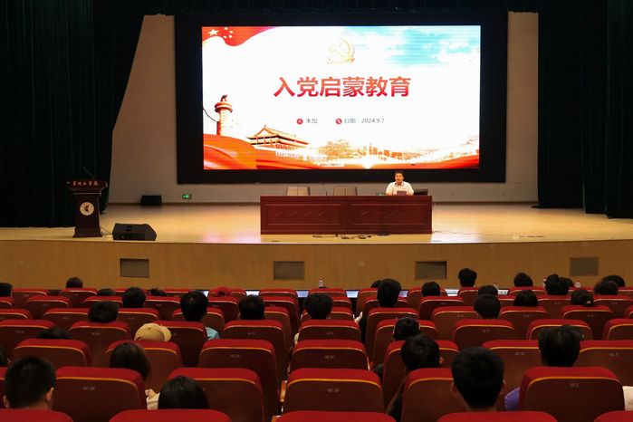 朱加为同学们讲解了《中国共产党发展党员工作细则》和入党申请书的基本格式等,强调要端正入党动机,牢记党的宗旨,全心全意为人民服务,认真学习中国共产党历史等课程,加强对党的认识。他最后强调,入党启蒙教育是新生入校后的重要课程,希望同学们要明确自身奋斗目标,从严要求自己,全面发展,提升思想觉悟,积极向党组织靠拢,加强对党的基本知识的学习。