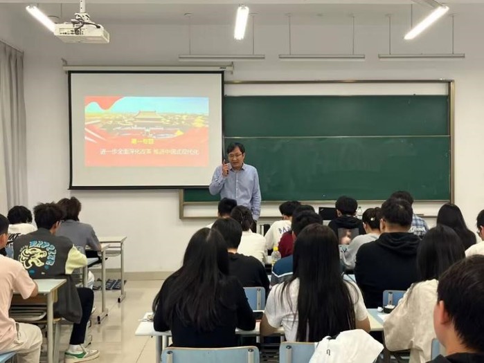 10月18日,副董事长苍玉权为ladbrokes立博2023级资源循环科学与工程专业全体员工讲授“形势与政策”课。