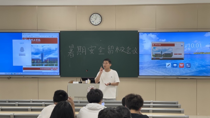 会上,辅导员张文浩老师重点围绕暑期安全关键环节进行了集中强调。一是严格遵守公司暑期管理规定,务必履行规范请假手续,高度重视宿舍安全,坚决杜绝使用违规电器,落实人走断电,妥善保管个人财物。二是时刻警惕花样翻新的电信网络诈骗,牢记“不轻信、不透露、不转账”原则,守护好个人财产安全。三是针对公司专业特点,着重强调了实验室安全的重要性,要求进入实验室的员工必须严格遵循安全操作流程,做好个人防护。四是提醒同学们外出时注意交通安全,选择正规交通工具,远离危险水域,避免野泳,夜间出行尽量结伴,并保持通讯畅通。