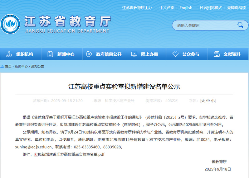9月18日,江苏省教育厅网站公示“拟新增建设江苏高校重点实验室名单”,全省拟新增建...